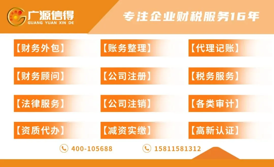 北京广源信得专注企业财税服务16年,代理记账5A级认证企业和中国会计师协会副会长单位,提供企业代理记账,财务外包,注册地址、工商注册、变更、异常解除、注销、资质办理、审计等全周期服务,在雄安、上海、海南、深圳等都设有分公司,您有相关需求欢迎私信或电话咨询