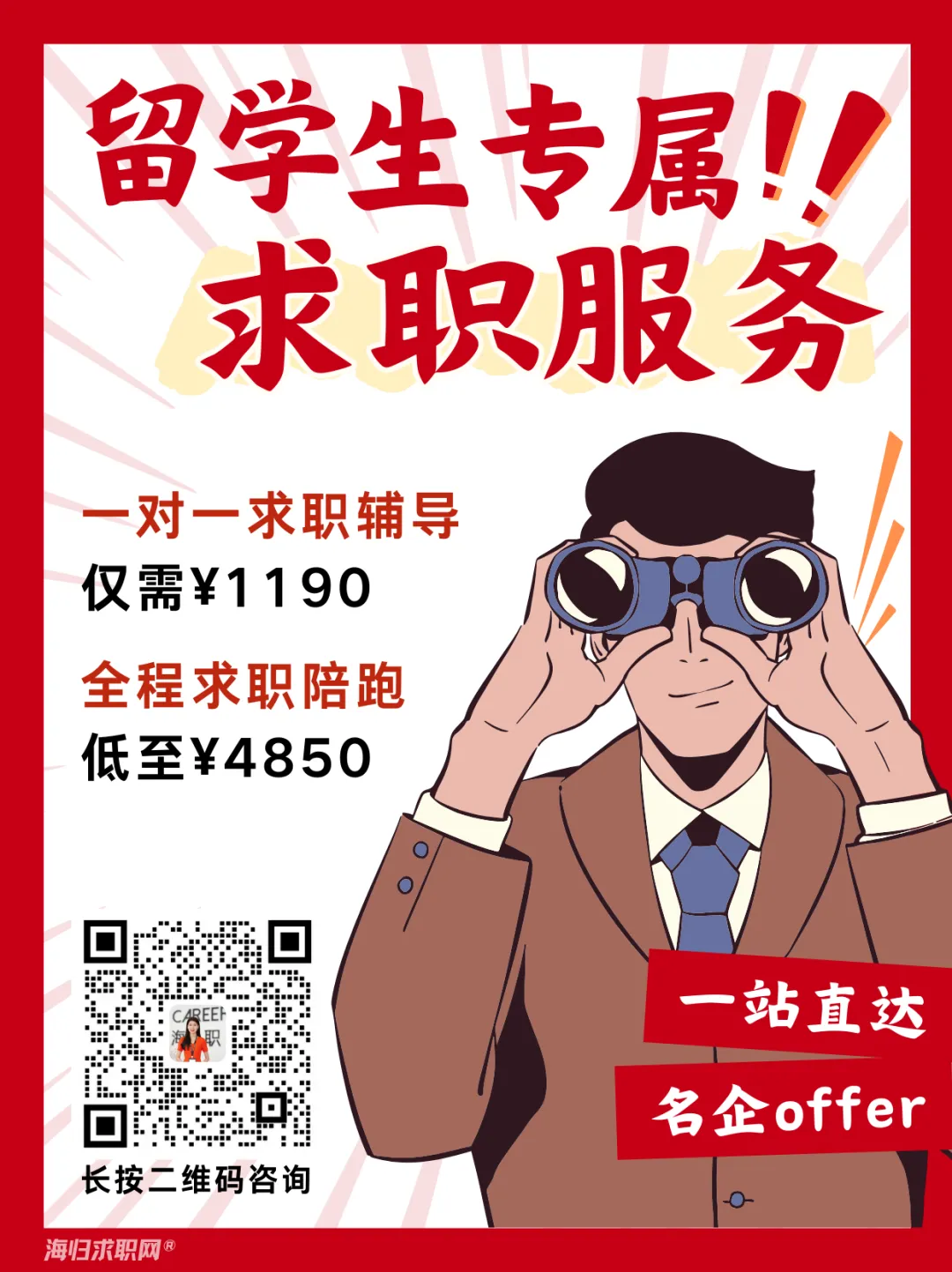 粉丝专属福利:点击上方公众号名称关注公众号,私信回复“11”,免费领取《留学生职位精选》,汇总1000+留学生专属名企高薪职位。