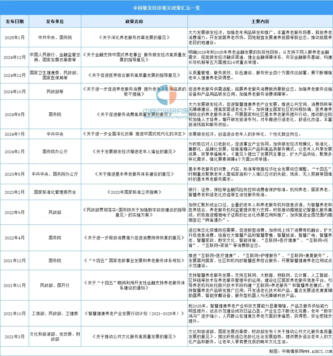 政策层面,国家和地方层面均出台多项政策扶持银发经济产业。