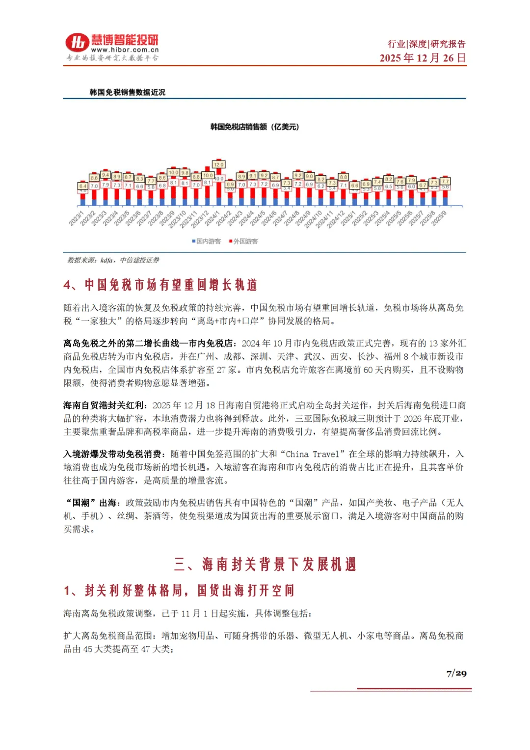 海南封关带来重大发展机遇。封关后实施 “一线放开、二线管住” 政策,离岛免税商品品类扩至 47 大类,新增宠物用品、无人机等,允许国内商品入店并退免税,岛民凭年度离岛记录可不限次 “即购即提”,离境旅客也被纳入政策覆盖。三亚国际免税城三期预计 2026 年底开业,聚焦重奢与高税率商品,叠加国际旅客消费潜力释放,海南离岛免税 2027 年销售额目标剑指 600 亿元。