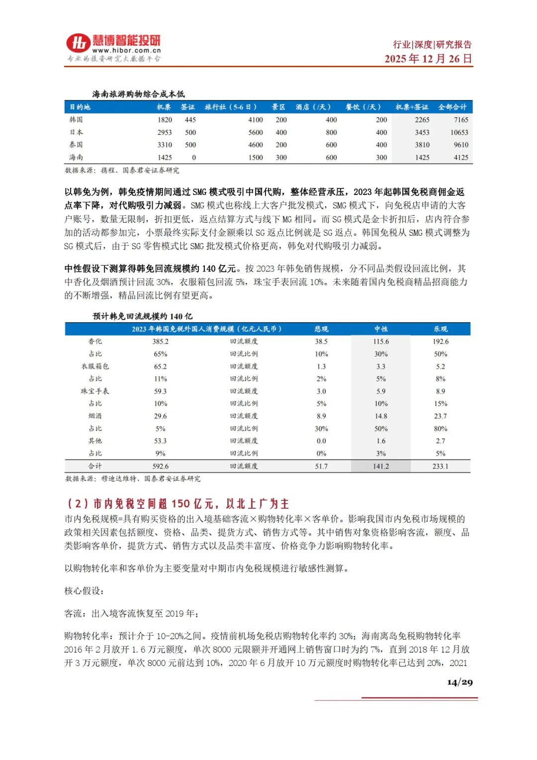 市内免税成为第二增长曲线。2024 年新政推动全国市内免税店扩容至 27 家,覆盖广州、成都等核心城市,允许出境前 60 天购物且不设限额,支持 “线上预订、口岸提货”。市内免税在购物空间、品类丰富度和体验上优于口岸免税,预计中期市场规模约 158 亿元,北上广等一线城市盈利性最强,有望承接超 140 亿元的韩国免税消费回流。