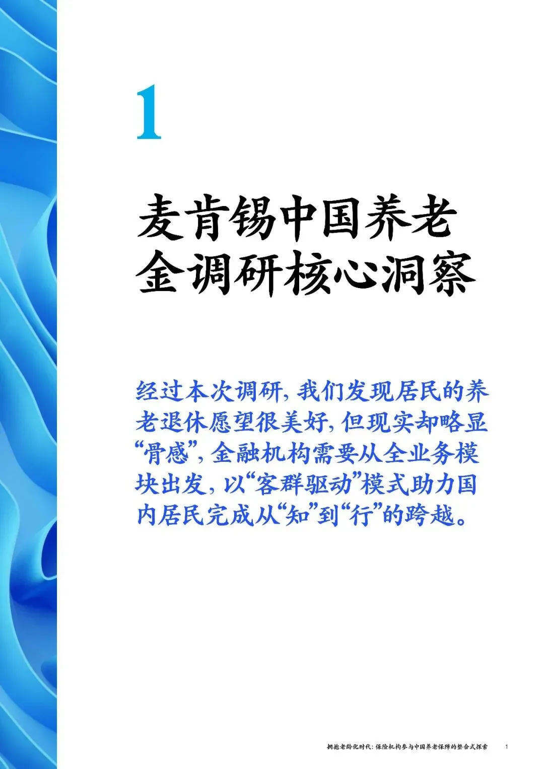 近日,麦肯锡发布《中国养老金调研报告:拥抱老龄化时代,保险机构参与中国养老保障的整合式探索》,用详实数据勾勒出中国养老市场的真实图景,也为保险机构参与养老保障建设指明了方向。今天,我们就用通俗的语言,把这份重磅报告的核心内容讲清楚。