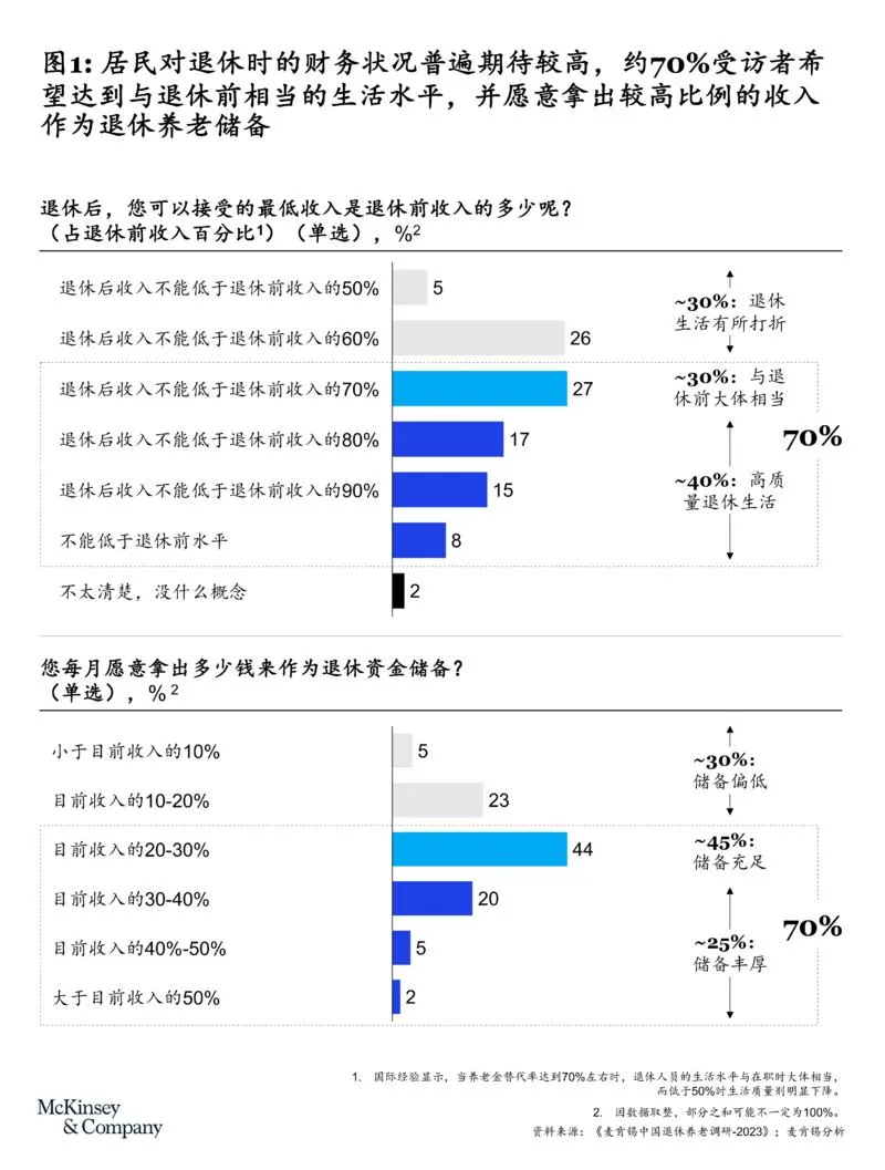 (一)愿望:70%想维持退休前生活,愿高比例储备