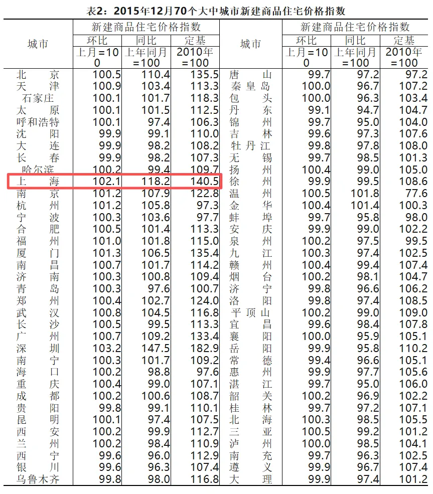 国家统计局数据显示,2015年上海新建商品住房和二手存量住房价格指数涨幅分别达18.2%和11.7%,2016年1-2月同比涨幅进一步扩大至26%和16%(数据来源:国家统计局 全国70个大中城市商品住宅销售价格变动情况)