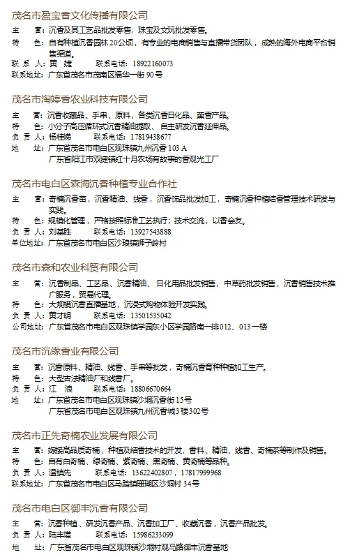【连载】2024中国沉香产业发展报告附录3 || 中国沉香企业名录(11)