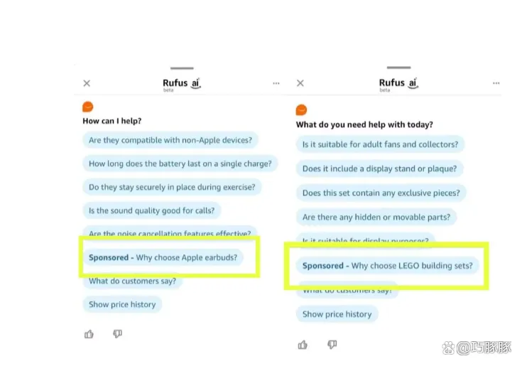 Prompt 广告,其实就是亚马逊为了配合 AI 助手(比如 Rufus)推出的一种新广告形式。它不再依赖关键词触发,而是通过“问题+对话”的方式,来推荐与你产品相关的结果。