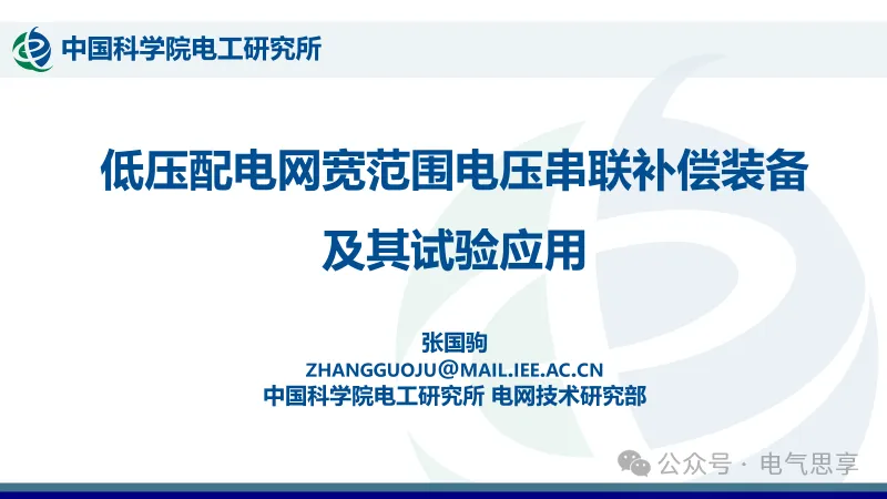 【专家报告】中国科学院电工所 张国驹:低压配电网宽范围电压串联补偿装备及其试验应用
