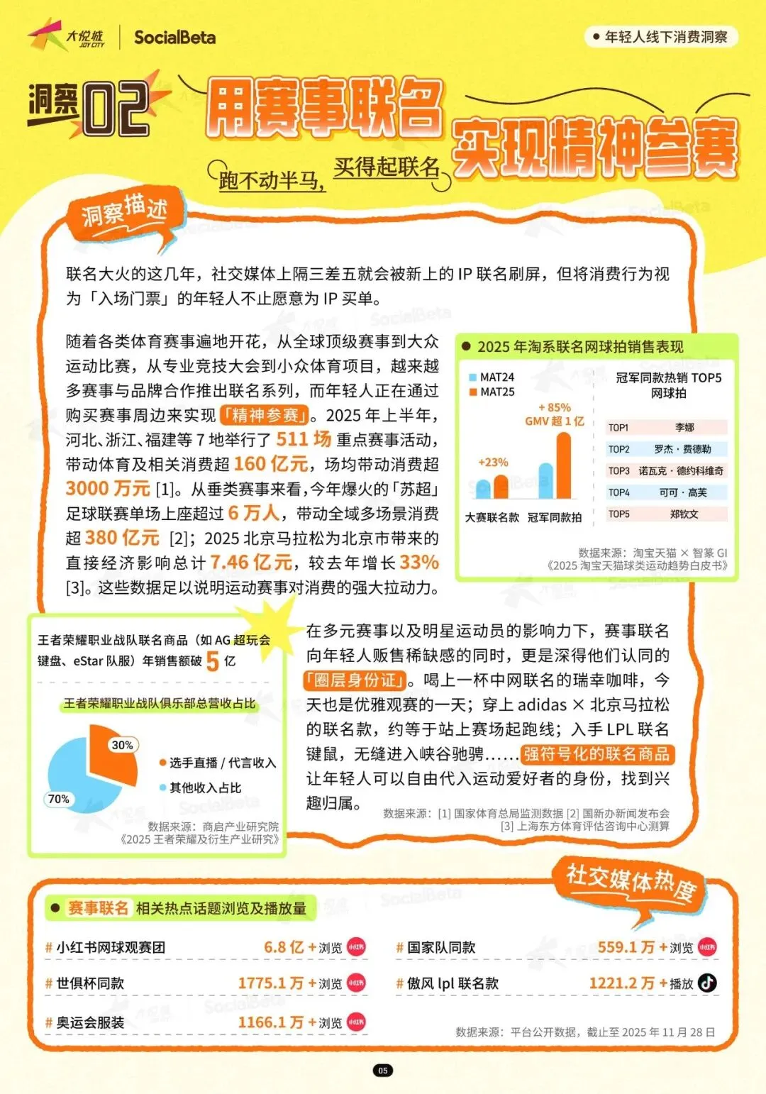 运动赛事的消费拉动力同样不容小觑。河北、浙江、福建等 7 地举办的相关赛事,直接经济影响总计达 7.46 亿元。年轻人热衷于购买赛事联名商品,以此获得 “圈层身份证”。59% 的年轻消费者会为强符号化的联名商品买单。