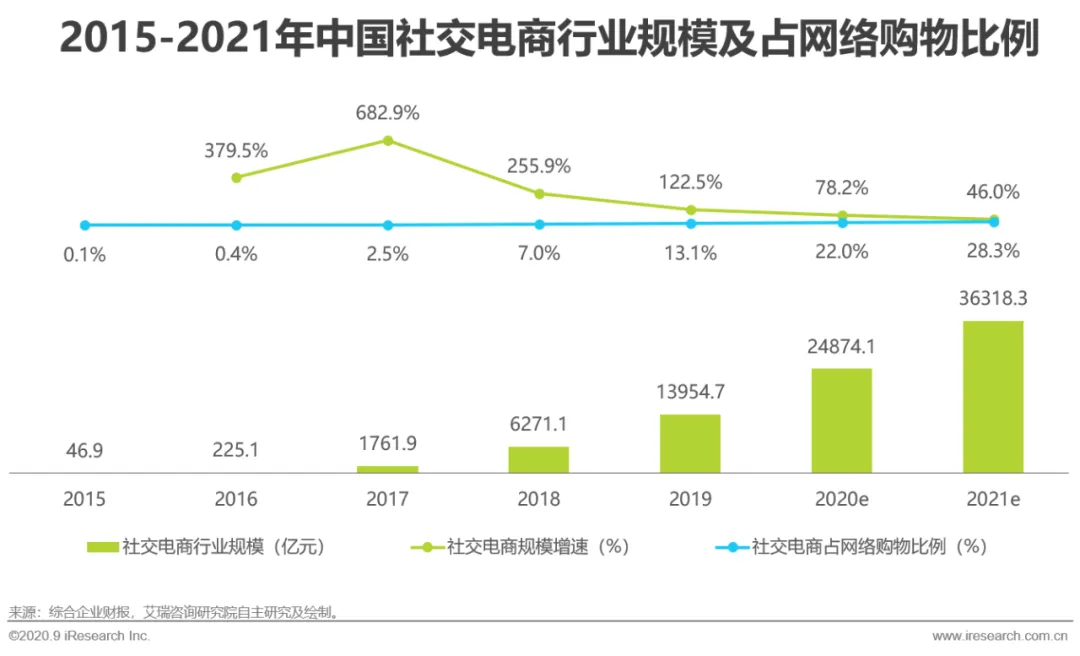 随着传统平台型电商进入存量争夺的阶段,各大主流电商平台的获客成本逐年升高,平台抽成高、用户粘性低的问题凸显。商家越来越倾向围绕用户个体形成去中心化的传播网络,依托私域流量建立直达终端消费者的社交电商。相比依赖于电商平台,社交电商、直播电商等新模式中商家与消费者的联系更加紧密,“以老带新”的裂变可以帮助商家获得流量话语权。后流量时代的新鲜玩法层出不穷,营销与运营活动复杂化,商家对专业第三方服务商的需求变得愈发强烈。