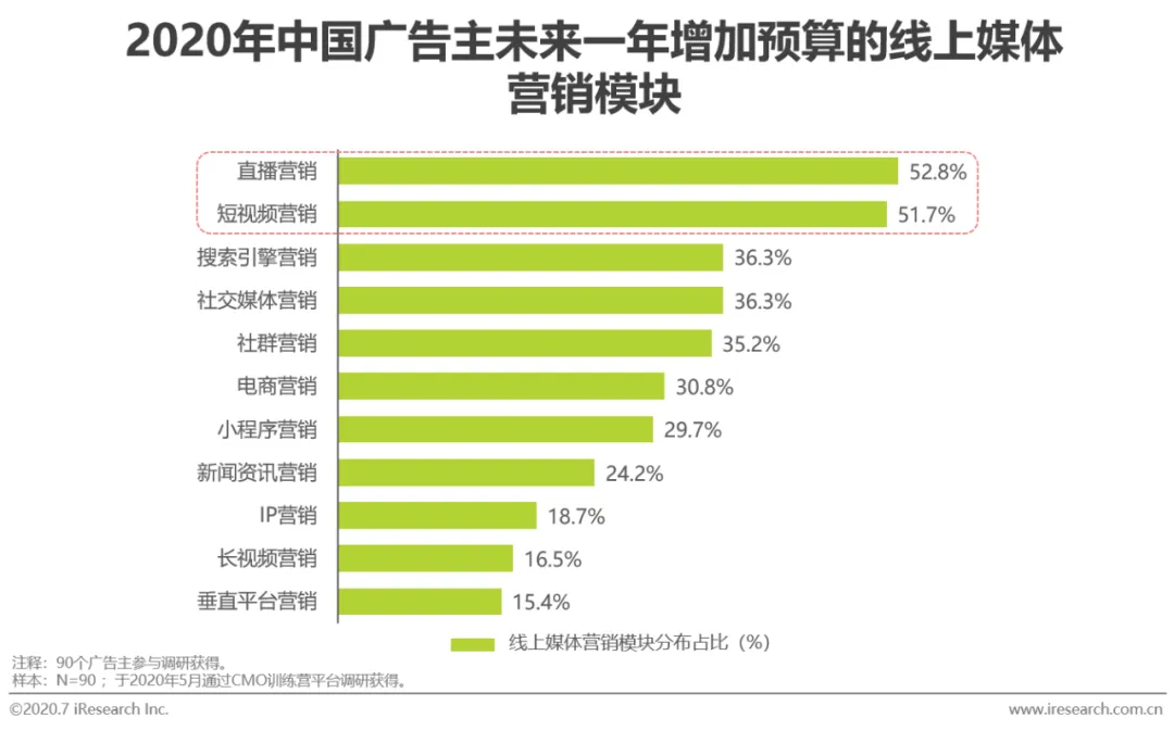 广告主将增加线上媒体预算,直播和短视频营销最受关注