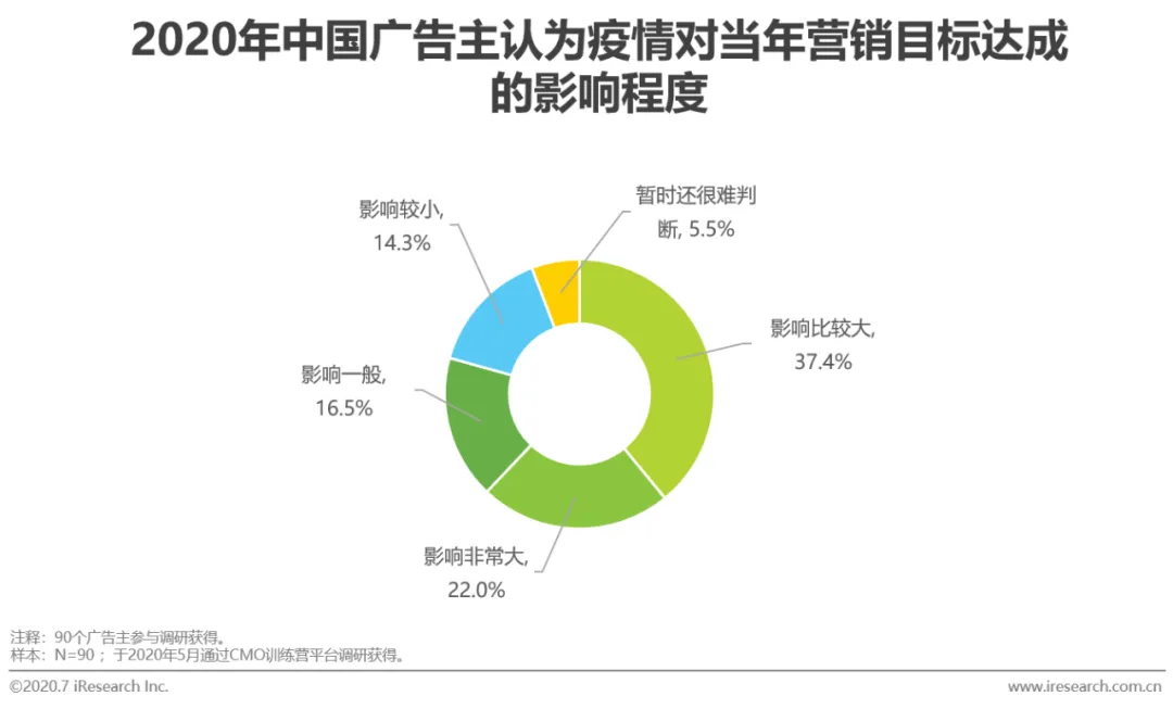 超5成广告主认为疫情对当年营销目标的达成有很大影响