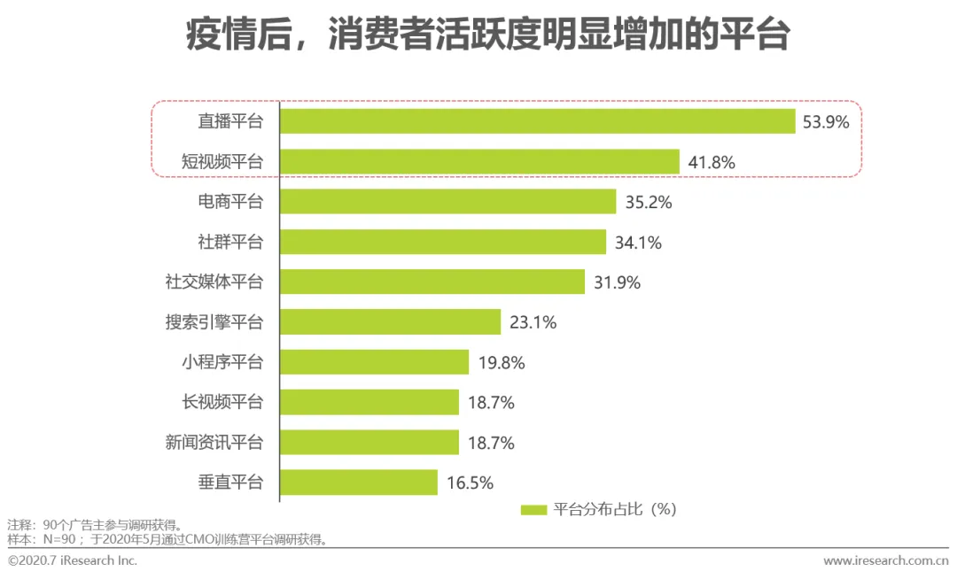 疫情期直播平台活跃度增加,疫情后也将加大直播营销投入