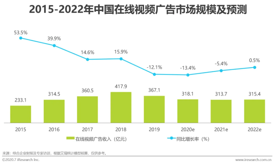 在线视频广告首次出现同比负增长,品牌广告受影响较大