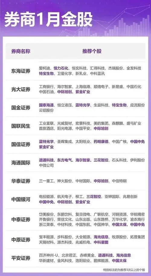 以下是【2026年1月券商“金股组合”名单】,建议收藏关注!