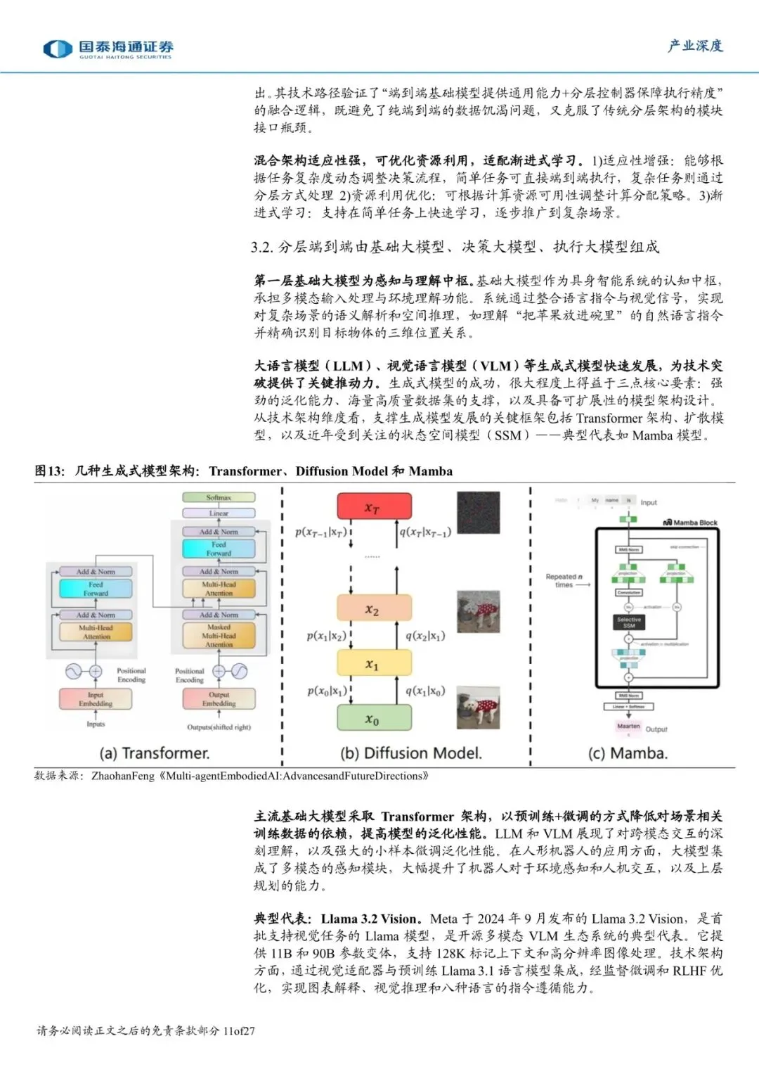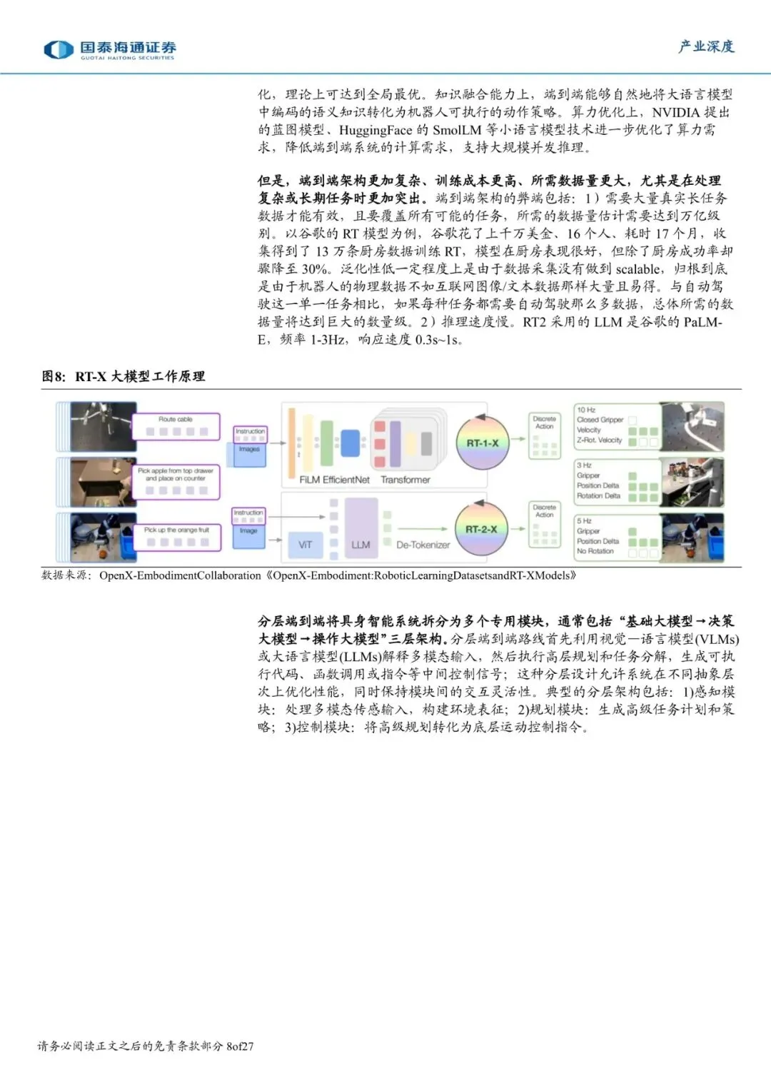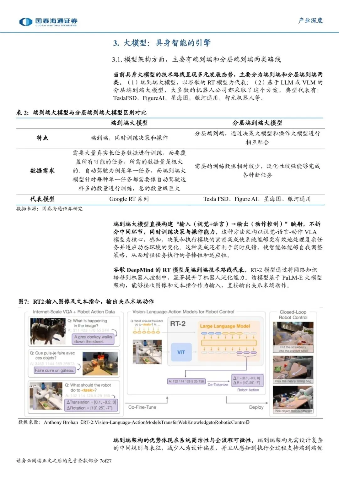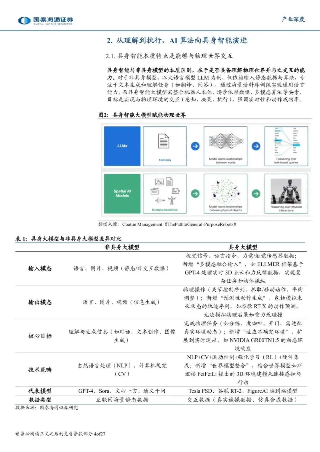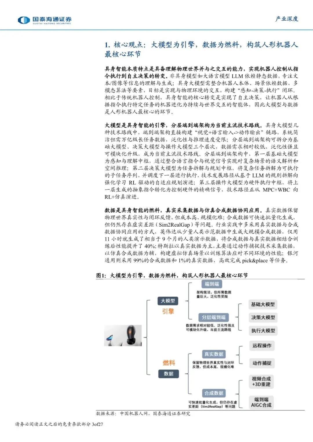 具身智能本质特点是具备理解物理世界并与之交互的能力。相比于传统机器人控制,具身智能的核心转变是实现了自主决策,让机器人从根据指令执行特定任务的机器进化为持续与世界交互的智能体,因此大模型与数据是人形机器人最核心的环节。