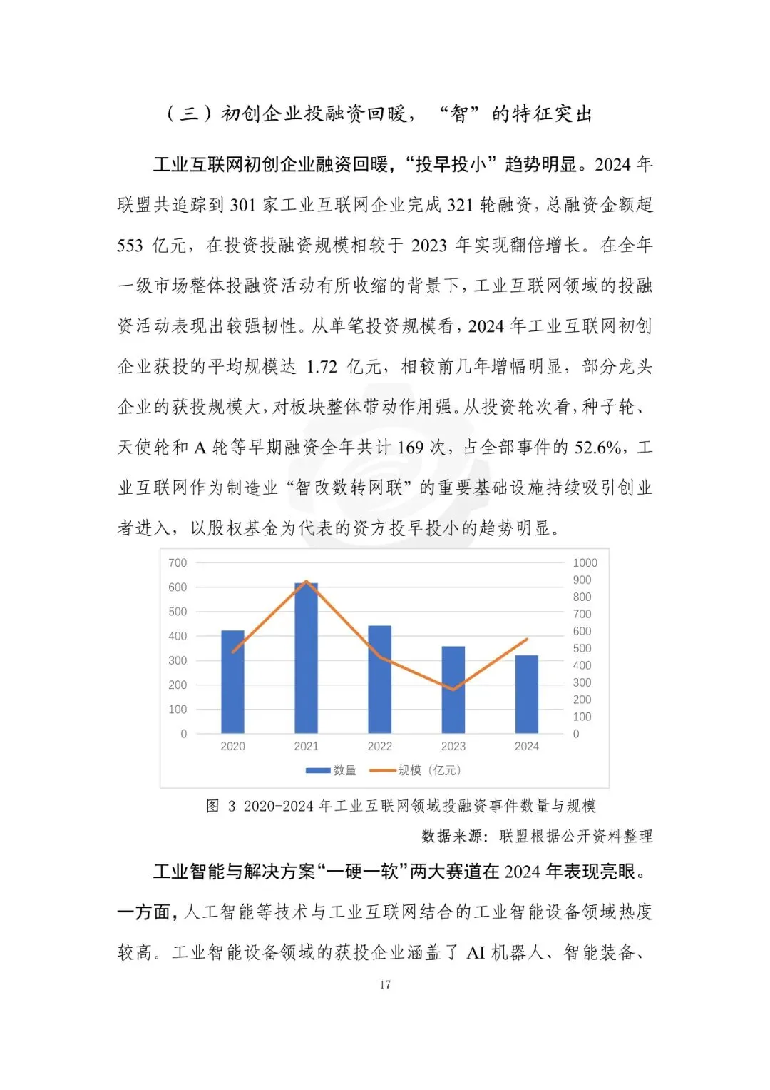 近期,工业互联网产业联盟(简称“联盟/AII”)正式发布《中国工业互联网投融资报告(2024年)》报告系统梳理了我国工业互联网在过去一年的发展态势、投融资动向及与金融双向赋能的创新实践。报告指出,工业互联网已进入规模化发展新阶段,正成为推动新质生产力发展的重要引擎,工业互联网领域的“科技-产业-金融”良性循环加速形成。