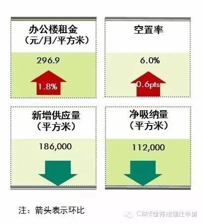 租金方面,写字楼平均租金环比增长1.8%至每月每平方米296.9元,浦东以2.2%的涨幅继续领跑浦西的1.6%。陆家嘴、南京西路、淮海路等核心板块均录得2%以上的季度增长,在次中心板块中恒丰路租金涨幅最大,为1.2%。