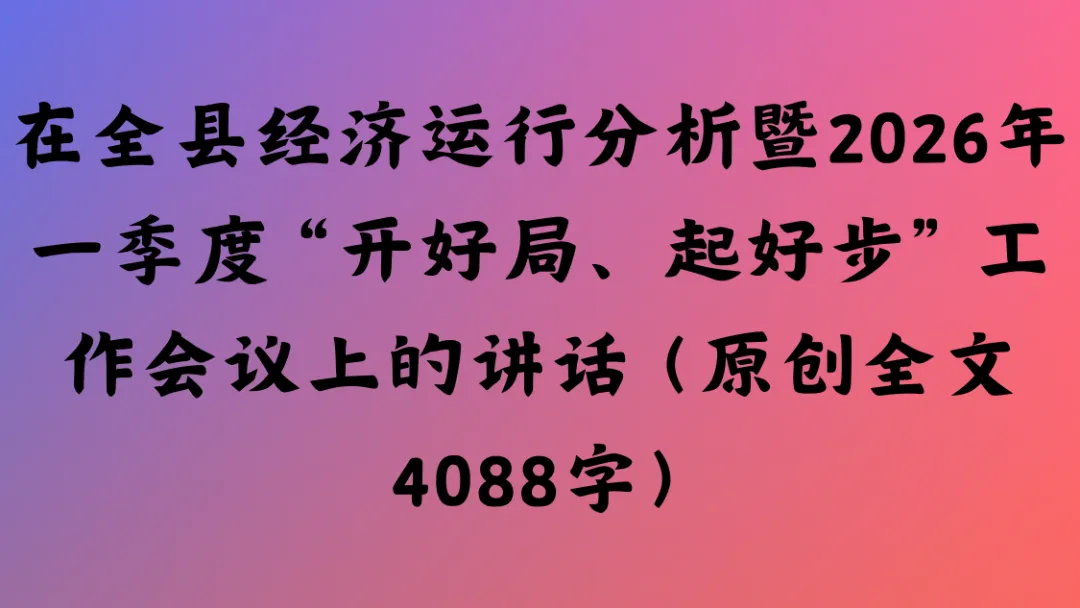 今天,我们召开全县经济运行分析会议,主要任务是总结回顾过去一年经济工作,科学研判当前发展形势,系统部署2026年第一季度重点工作,动员全县上下进一步统一思想、凝聚共识、明确方向、狠抓落实,奋力实现新年首季“开门红”,为完成全年经济社会发展目标奠定坚实基础。下面,我讲四点意见。