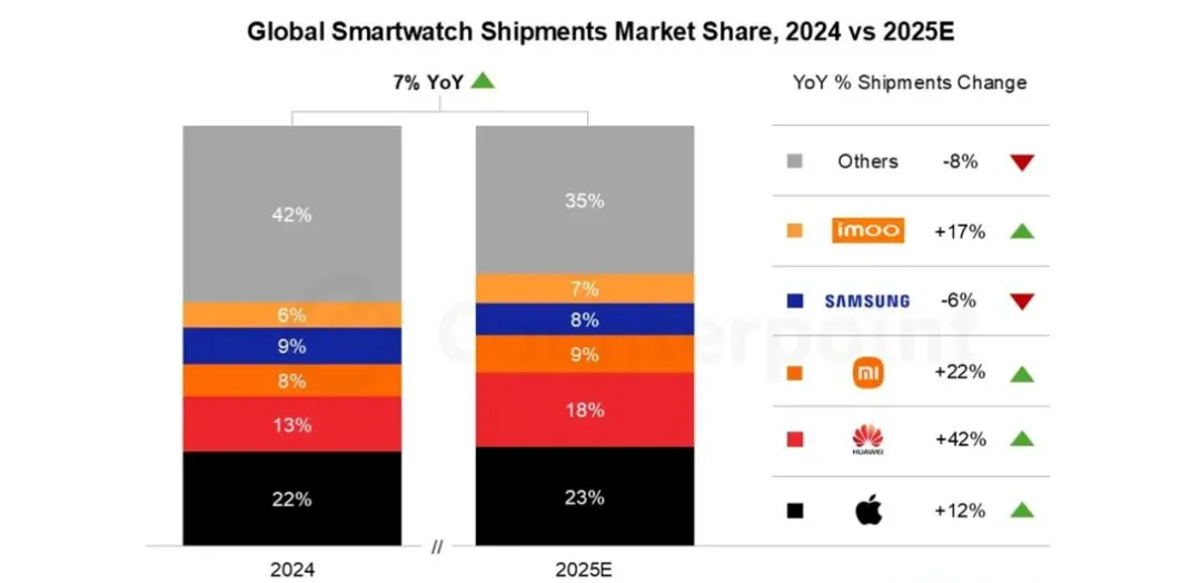 Counterpoint:2025年全球智能手表出货预计同比增长7%
