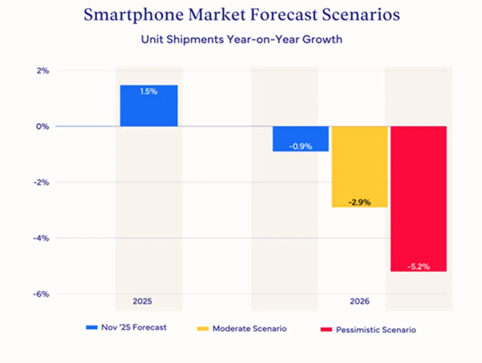 多重压力叠加下,全球智能手机市场将呈现 “规模收缩 + 均价上涨” 的格局: