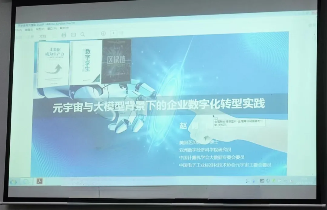随着科技的飞速发展,数字化转型已成为企业发展的必然趋势。为了顺应这一潮流,公司近期举办了一场关于《元宇宙与大模型背景下的企业数字化转型实践》主题的培训会议。此次会议特地邀请了美国芝加哥大学博士、亚洲数字经济科学院研究员赵勇博士,为我们带来一场内容丰富、颇具深度的培训会议。