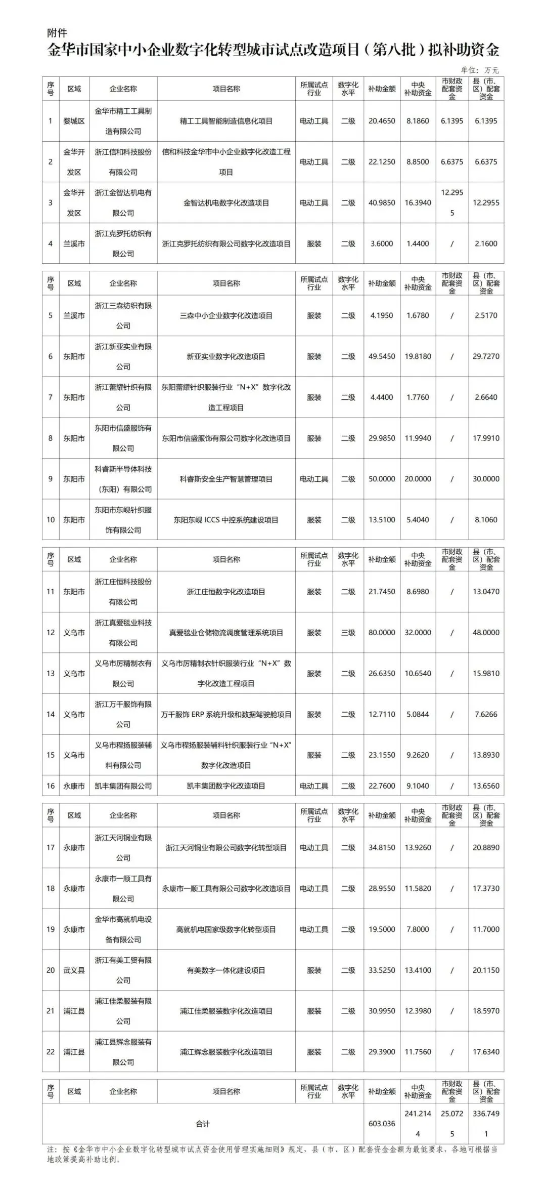 附件:金华市国家中小企业数字化转型城市试点改造项目(第八批)拟补助资金.docx