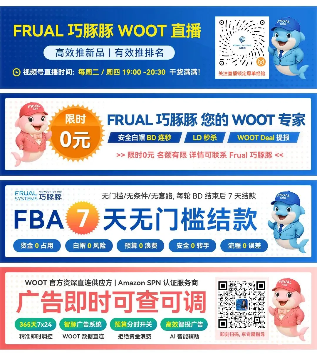 Frual Systems 巧豚豚自 2018 年起,将亚马逊全资子公司 WOOT 业务引入中国。凭借扎实专业能力与优质服务,多年来积累良好行业口碑,成为众多卖家信赖的伙伴。