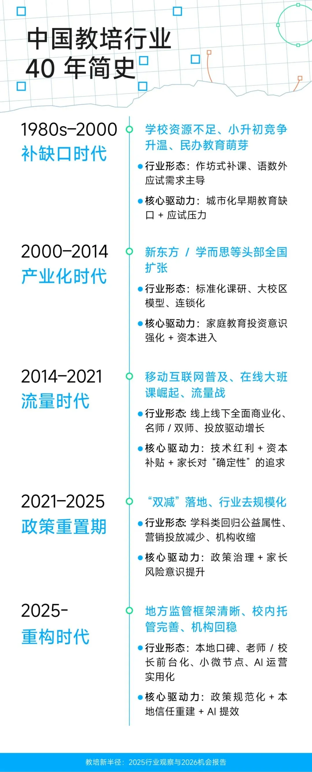 2025 年的教培行业不是“恢复”,而是“重建”。驱动这场重建的不是单一政策,而是家长决策方式、教育产品形态、机构经营逻辑、技术基础与学习观念的全面迁移。