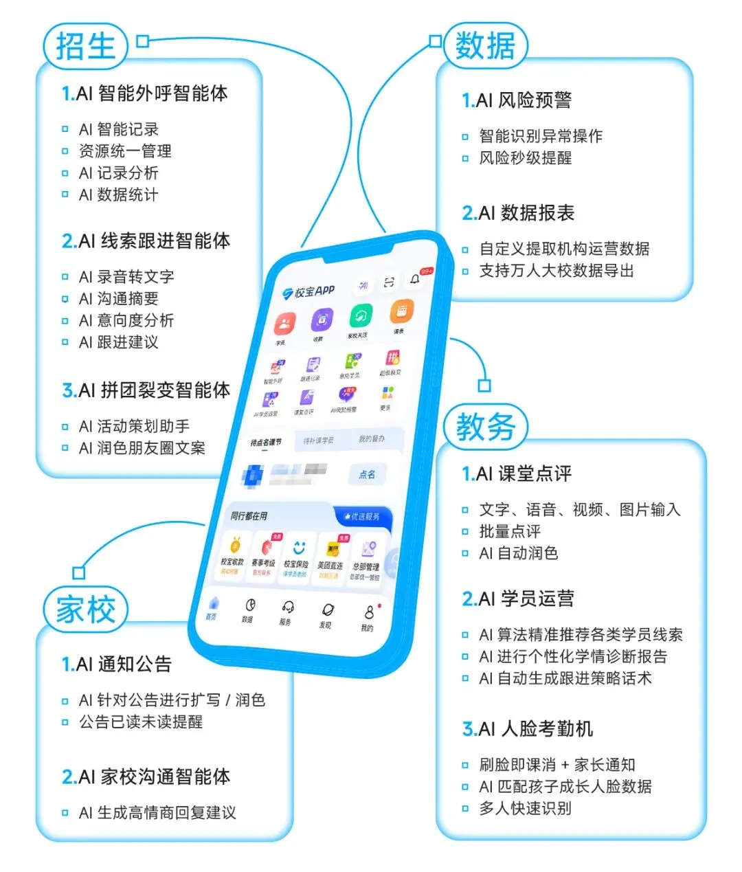 自ChatGPT、DeepSeek等生成式AI引发个人使用热潮后,部分老师开始尝试借助不同的AI工具完成文案润色、通知撰写等工作。今年 10 月底,“校宝 App AI 全家桶”发布,行业内开始出现将招生、教务、家校沟通与数据管理全链打通的智能化运营方案。AI在行业里开始进入“智能化运营底座”的阶段,而不是停留在单点工具的叠加。机构对技术的期待也从提升某一环节的效率,逐步转向对整体运营智能化的依赖。