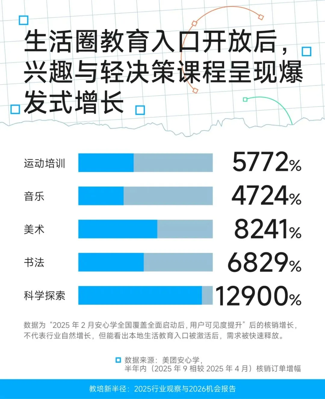 在低龄端,小学阶段的托管与作业辅导被学校部分承接后,机构的新增量更多来自:低龄兴趣启蒙(艺术、体能、语言),学习习惯培养、学习方法类课程。