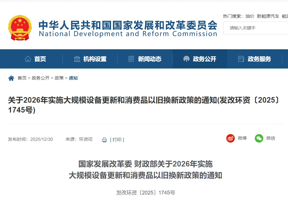 2025年12月30日,国家发展改革委、财政部联合印发《关于2026年实施大规模设备更新和消费品以旧换新政策的通知》,其中一项调整备受两轮电动车行业与亿万消费者关注:电动自行车大类被移出补贴名单。这意味着,自2026年起,电动自行车“国补”正式画上句号。