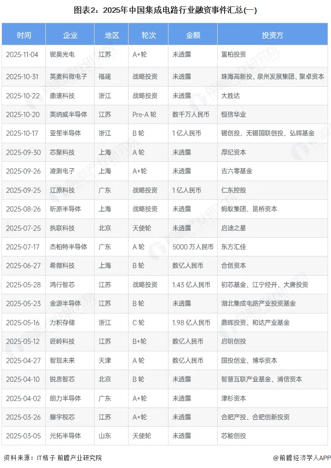 2025年我国集成电路行业的主要融资事件如下: