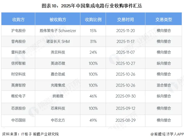 中国集成电路企业之间竞争较为激烈,并购事件主要以横向整合为主,辅以纵向整合和混合整合,目的是扩大市场份额、获取技术协同、完善产业链和实现多元化布局。