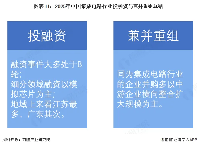 从我国集成电路行业投融资现状来看,目前我国集成电路市场投融资活动正在恢复活跃,且并购事件较多。我国集成电路行业投融资及兼并重组现状总结如下: