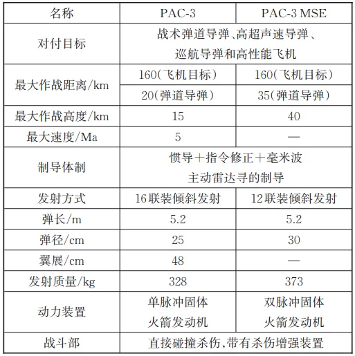 表1 PAC-3及PAC-3 MSE的主要战技指标
