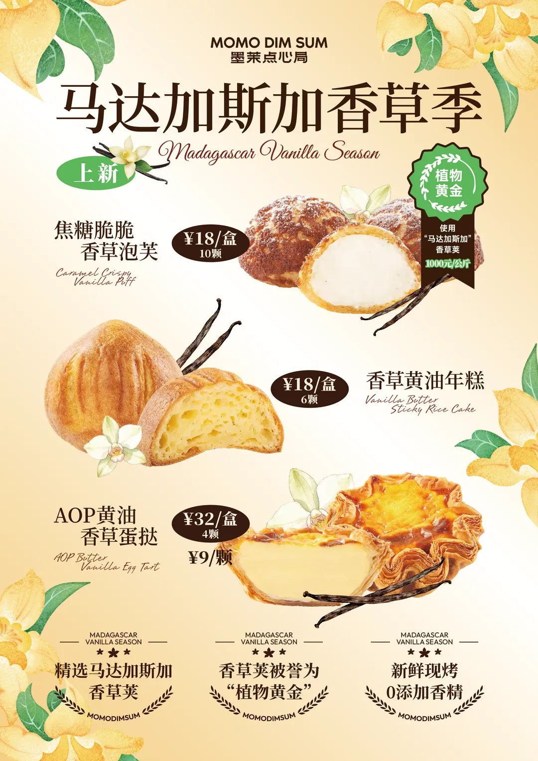 大家都吃上了吗!「焦糖脆脆香草泡芙」、「香草黄油年糕」、「AOP黄油香草蛋挞」,臻选天然马达加斯加香草荚,每日现烤现做。