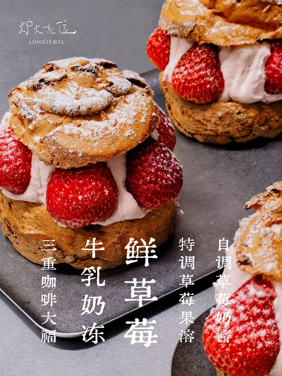 半斤大福泡芙系重磅迎新!红颜鲜草莓酸甜开启双重探索,三重咖啡大福苦香酷爽撞击,厚切牛乳布丁奶fufu~收尾!一场关于甜苦香的惊艳balance,冲就对了!