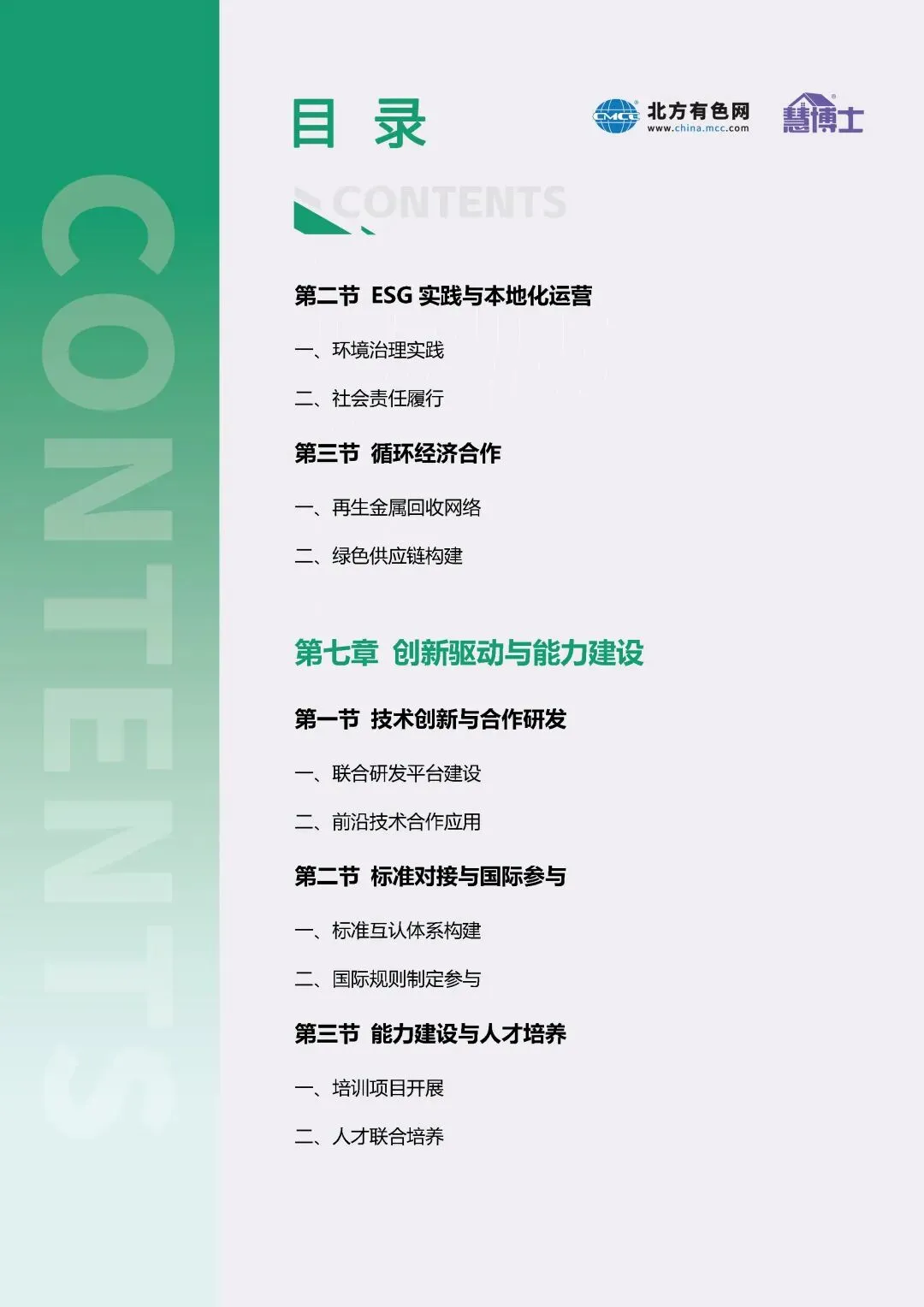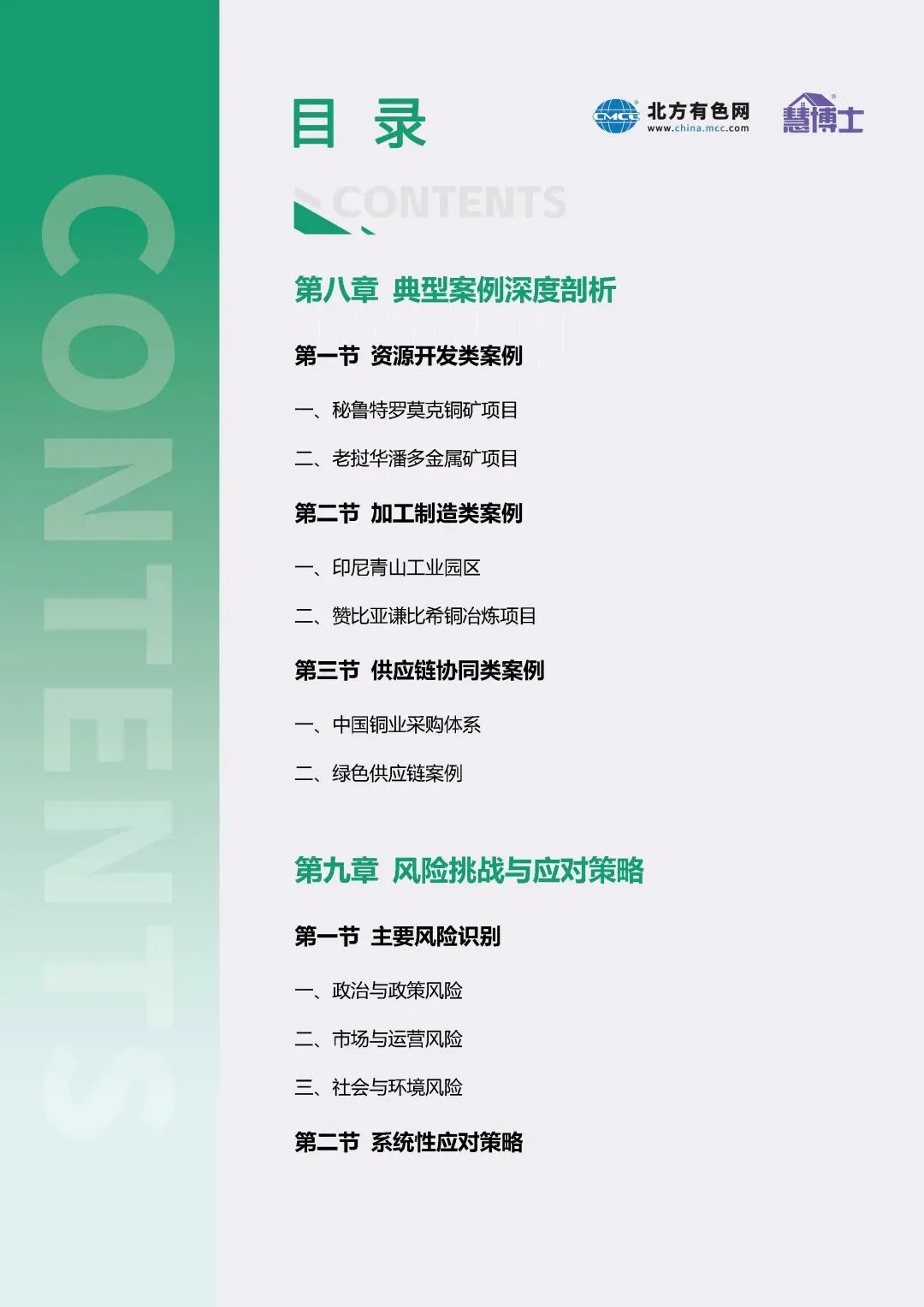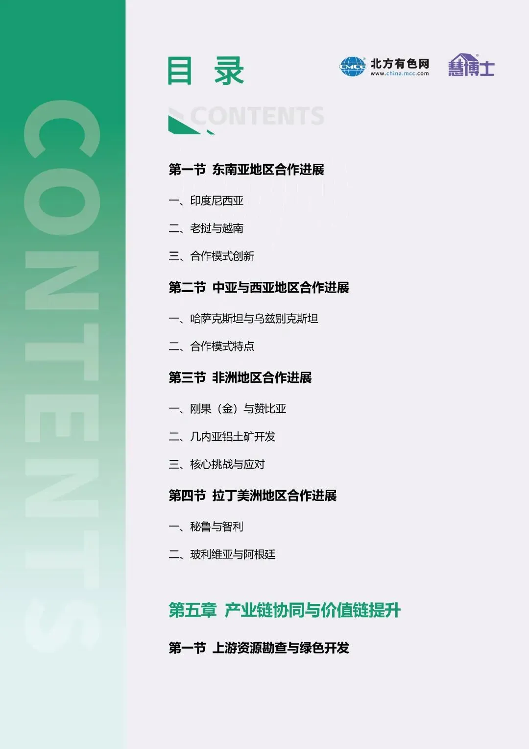 报告重点聚焦东南亚、中亚、非洲及拉美等重点区域的合作进展与模式演变,揭示出从单一贸易或资源获取,向“资源勘查—绿色冶炼—高端制造—循环回收”全产业链协同,以及“产品、装备、技术、标准、服务”一体化出海模式的深刻转型。通过剖析秘鲁特罗莫克铜矿、印尼青山园区、中国铜业供应链体系等一系列最新典型案例,报告生动展示了在ESG实践、本地化运营、技术创新与绿色标准共建方面的成功经验与标杆做法。