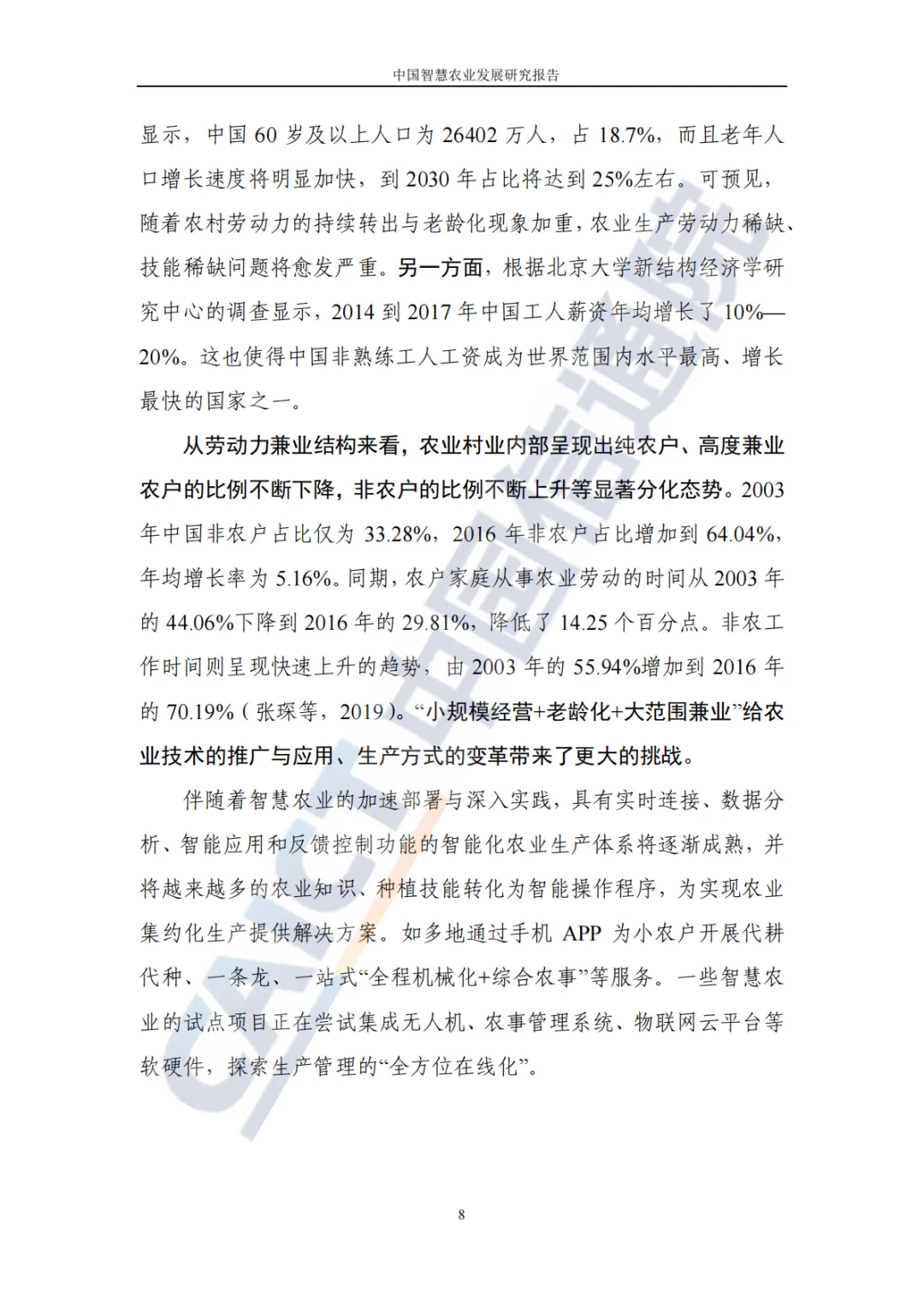 - 应对劳动力结构性挑战:农村人口老龄化、兼业化趋势加剧,“谁来种地”问题凸显。智慧农业通过智能装备替代重复性劳动,并通过移动终端将复杂农艺知识简化为“一键操作”,降低了劳作强度和技能门槛,为应对劳动力短缺提供了解决方案。