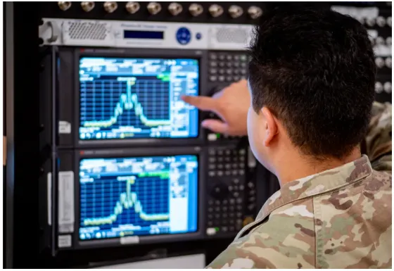图10 “坚决太空-2025”演习士兵操作频谱分析仪