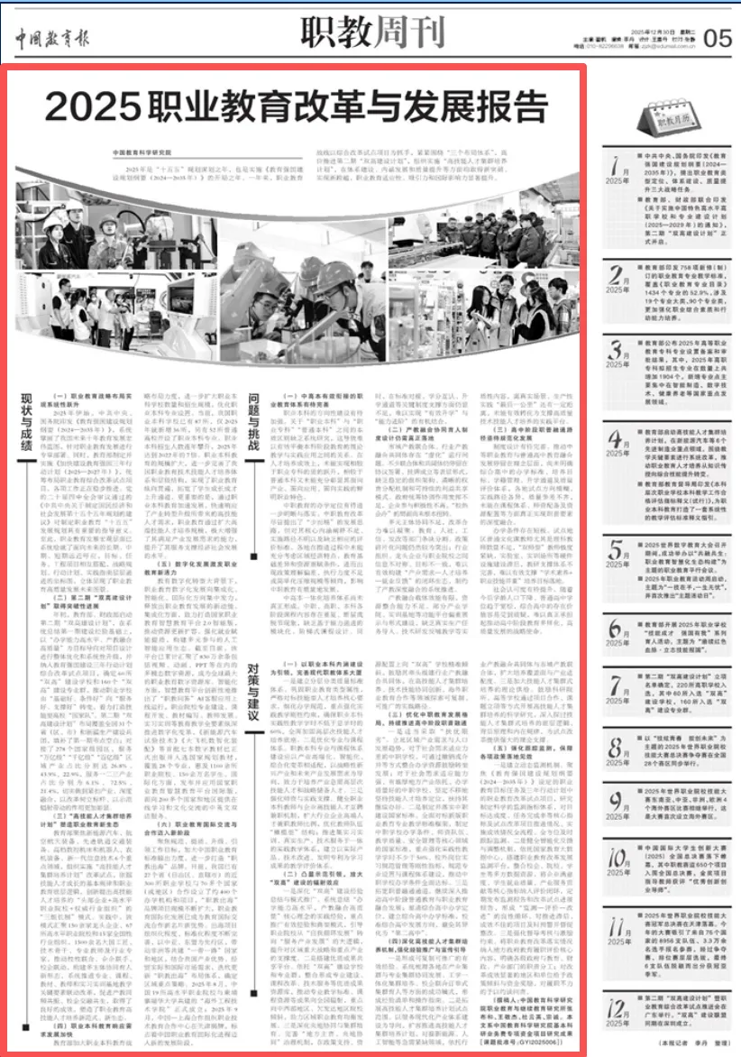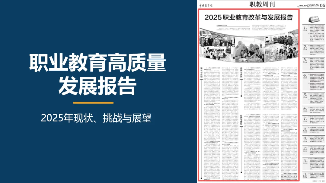 2025年是国家“十五五”规划的谋划之年,也是《教育强国建设规划纲要(2024—2035年)》的开局之年。在这一关键节点,中国职业教育围绕“三个布局体系”,以系列重大改革项目为抓手,在体系建设、内涵发展和质量提升上取得了系统性突破,其适应性、吸引力与国际影响力均获得显著提升。