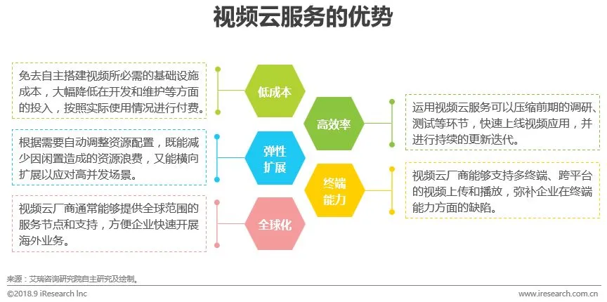 2016年视频直播的爆发为视频云服务行业的发展提供了重要的推动力。视频直播存在较高的技术和成本壁垒,为满足低延迟、高清晰、跨屏浏览等诸多要求,在高强度的市场竞争和快速的更新迭代的压力下,直播平台对视频云服务表现出巨大的需求。当前,视频同各行各业的融合已经逐渐成为常态,视频云厂商正在向更多的垂直领域探索,为用户提供多元化和个性化的服务。