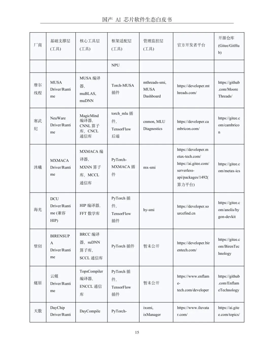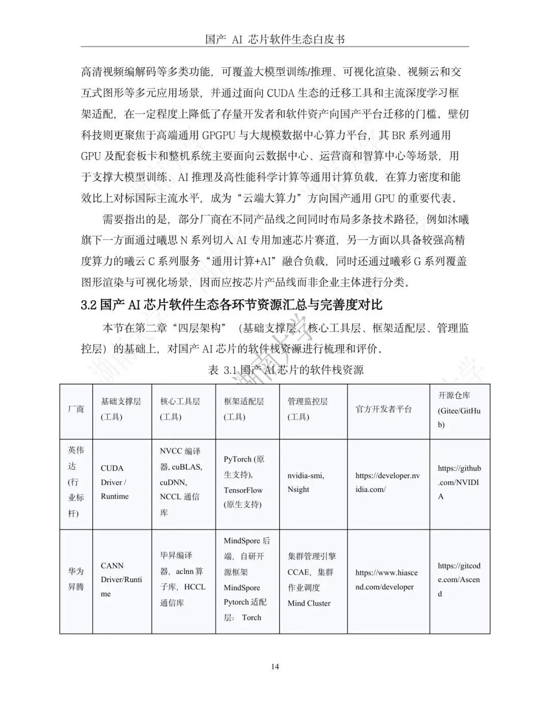 3.2 国产AI 芯片软件生态各环节资源汇总与完善度对比