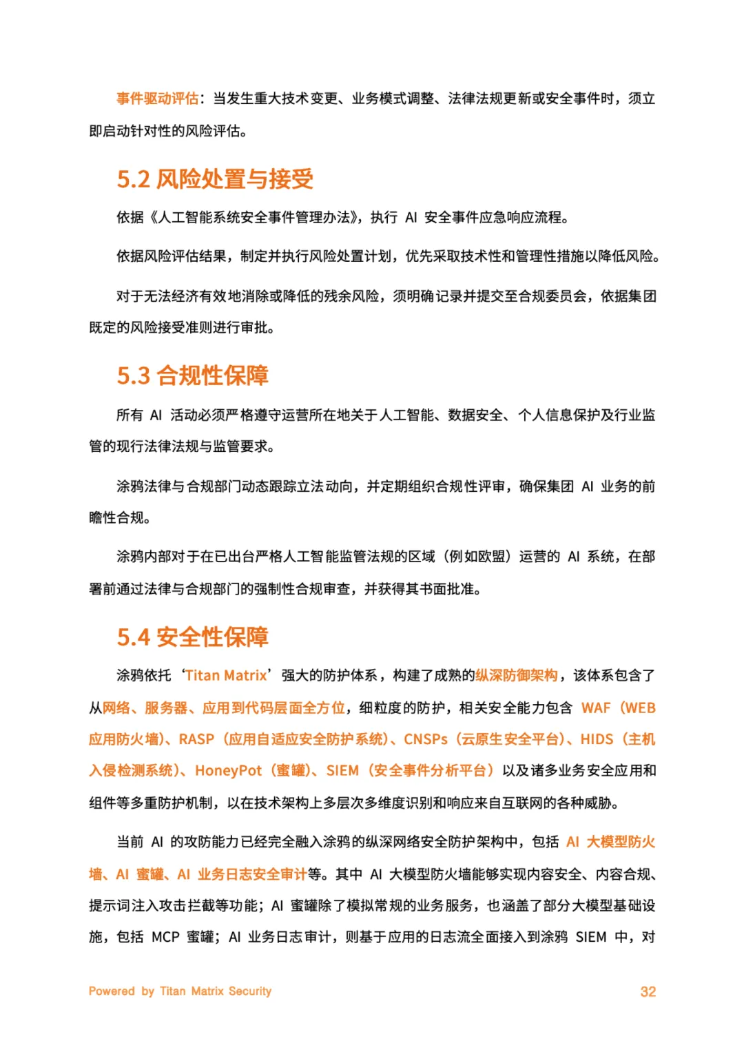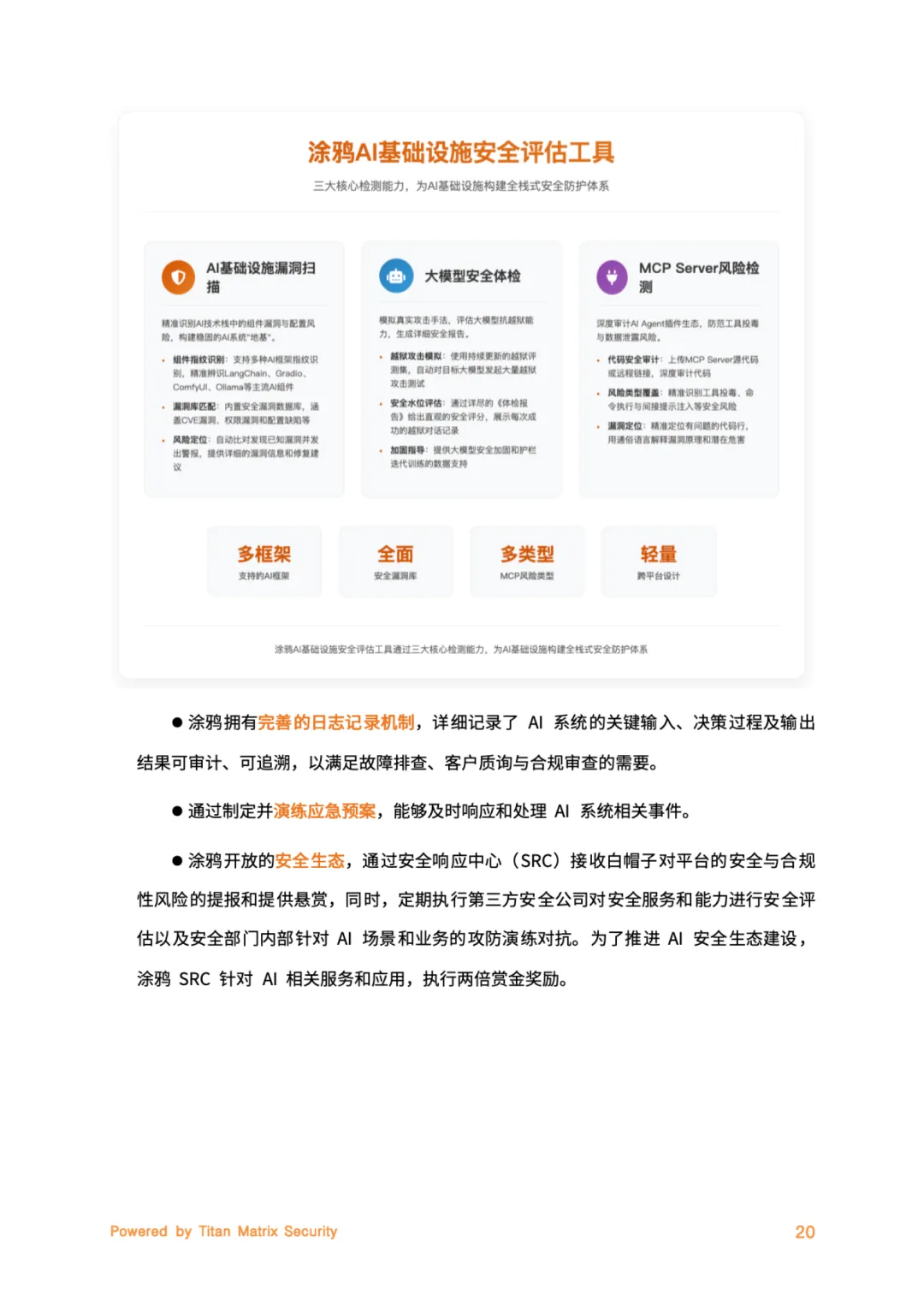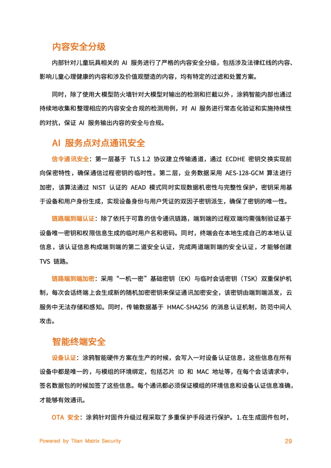 本白皮书系统阐述了涂鸦智能在全球AI安全与合规领域的战略框架与实践路径,旨在构建“以人为本、合规透明、风险可控”的可信智能生态。白皮书以“成为受信赖的智能生态构建者”为核心愿景,提出 “Titan Matrix”一体化安全品牌,通过“内生安全、合规驱动、智能防御、持续改进”四大支柱,贯穿AI业务全生命周期。公司建立三层治理架构(决策层、执行层、监督层),并获得 全球首批ISO/IEC 42001人工智能管理体系认证,确保AI活动的可审计性与问责制。