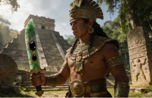 玛雅骑士多由贵族子弟担任,他们的武器是镶嵌黑曜石的长矛、棍棒与玉刃短剑。玉在玛雅文化中象征着神圣与永生,手持玉刃的骑士,不仅是战士,更是人与神之间的媒介。玛雅骑士的战斗,往往与宗教祭祀紧密相连 —— 他们在球场上进行的 “神圣球赛”,本质上是一场模拟战争的祭祀仪式,获胜的骑士将成为神的宠儿,为城邦带来丰收与和平。