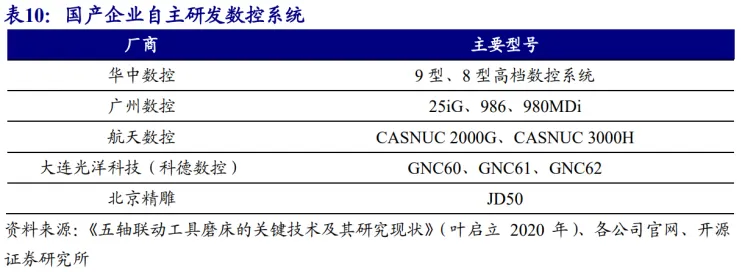 高端数控系统国产化率低于10%, 自主力亟待提升。高端数控系统主要满足航空航天、汽车、船舶等重要关键零件机械加工需求,一直是重要的战略资源,被发达国家严格管控,禁止对外销售或完全开放功能。作为资本和技术密集型产业,高端数控系统已经形成寡头市场,寡头反之加强资本和技术密集。目前我国高端数控系统国产化率不足 10%, 成为导致中国制造基础薄弱的 “卡脖子” 关键基础部件。国内华中数控、北京精雕、科德数控等厂商正奋起追赶。