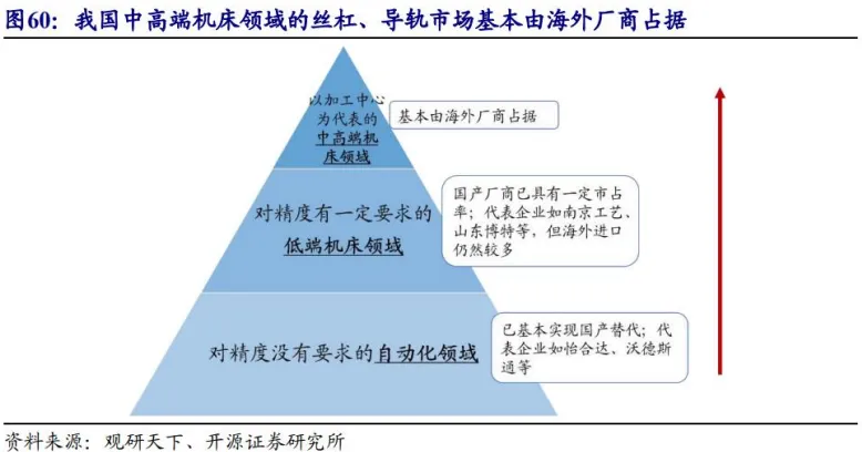 (3) 丝杠:滚珠丝杠是数控机床核心传动部件,高精度量产厂商稀少