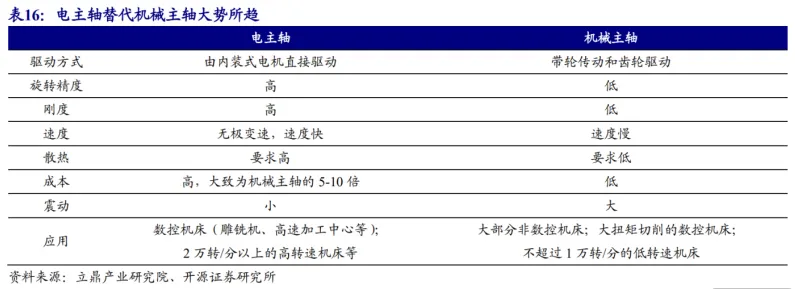 (4) 主轴:电主轴为高端机床必需环节,国产替代启动