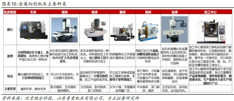 (1) 金属切削机床:加工中心、数控车床、重型机床、磨床是主要机型