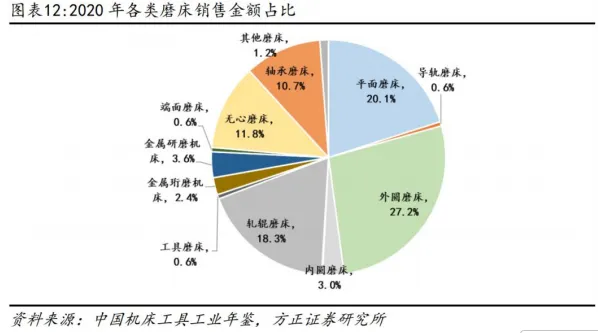 2) 磨床:实现更高行为公差精度和表面粗糙度,平面、外圆、轧辊是最主要机型